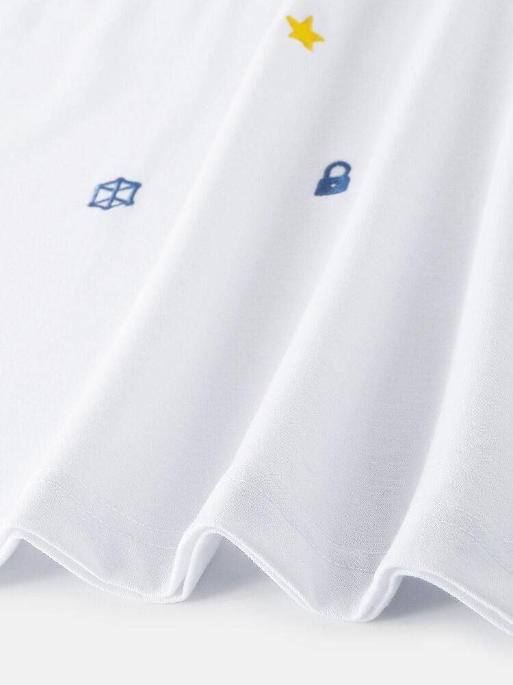 100 % Bomull Enkle Tegneseriebroderi For Menn Korte Ermer Hvite Fritidsgolfskjorter