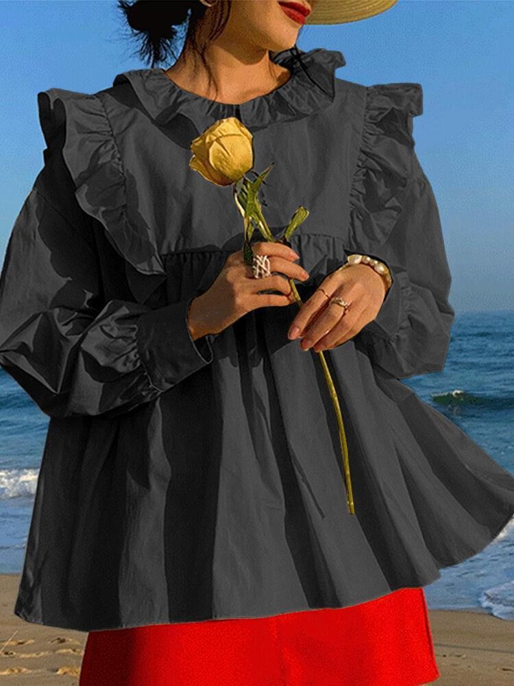 100% Polyester Langermet Solid Pleatinng Fritidsbluser