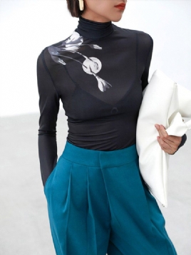Abstrakt Portretttrykk For Kvinner Med Rund Hals Uformelle Langermede Bluser