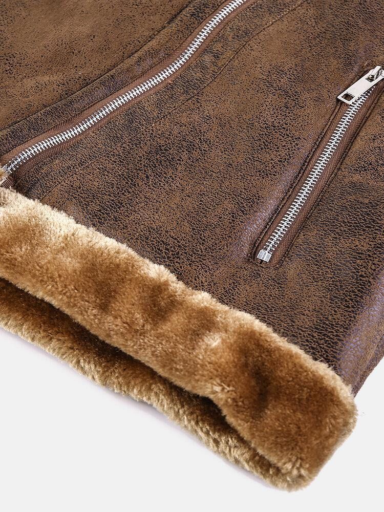 Asymmetrisk Glidelås Fuskepels Tykk Jakke Med Krage For Menn