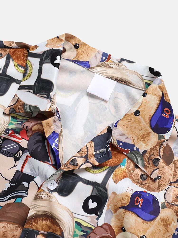 Bear Teddy Cartoon Casual Skjorter For Menn