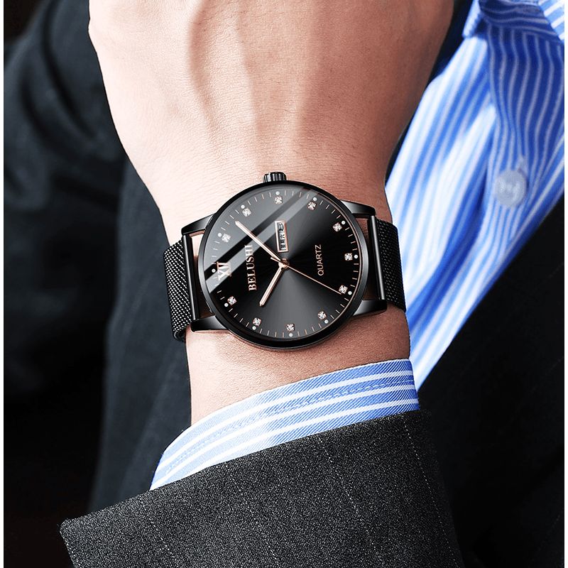 Belushi 545 Mote Armbåndsur Lysende Kalender Dato Business Menn Vanntett Kvarts Klokke