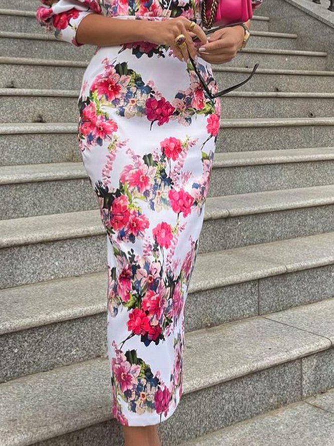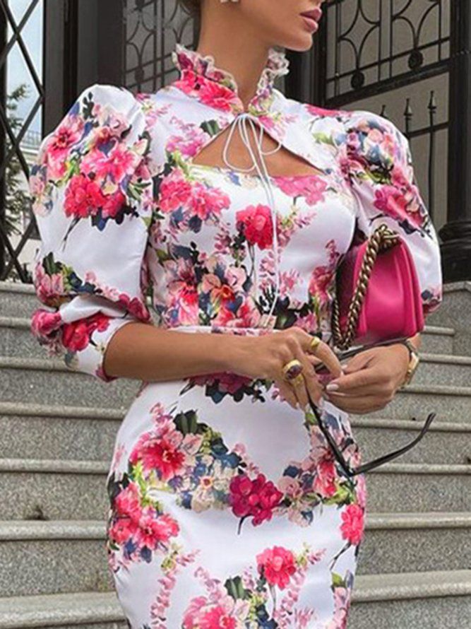 Blomstret Regular Fit Three Quarter Elegant Dress