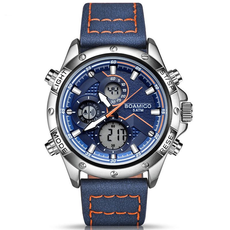 Boamigo F546 To Tidssoner Dual Display Klokke Led Lys Kronograf Alarm Menn Quartz Klokker