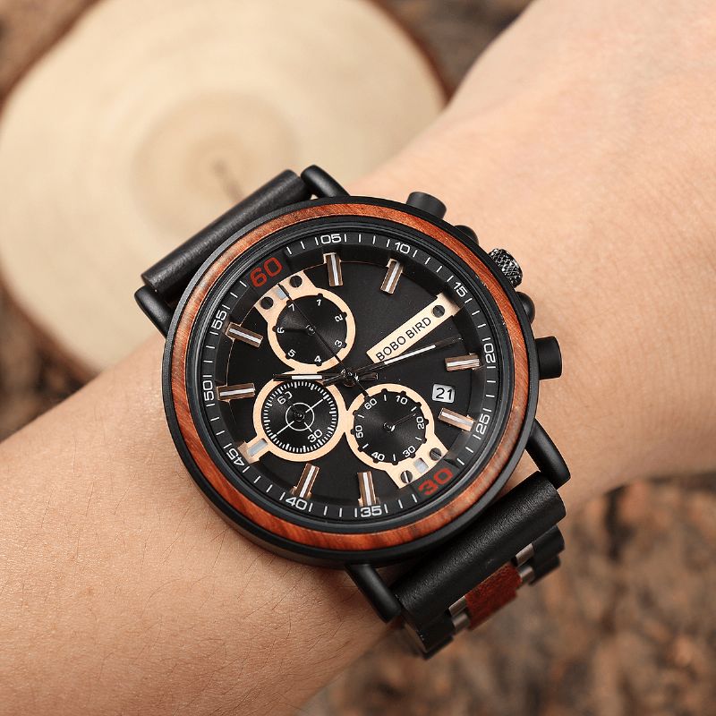 Bobo Bird S18-1 Menn Tre Lysende Hånd Dato Vis Armbåndsur Kvarts Klokke