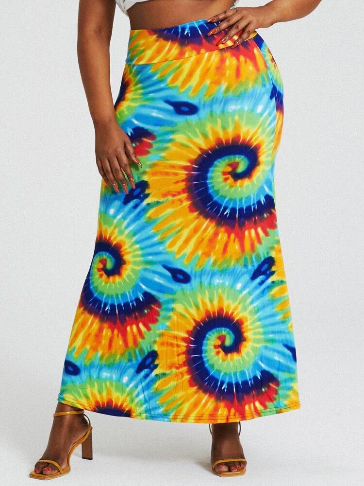 Bohemia Tie Dye Print Høy Midje Rumpe Bodycon Langt Skjørt