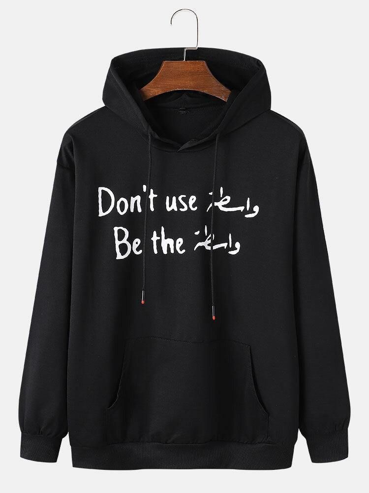 Bokstavslogantrykk For Menn 100 % Bomull Med Snøring Overhead-Hettegensere