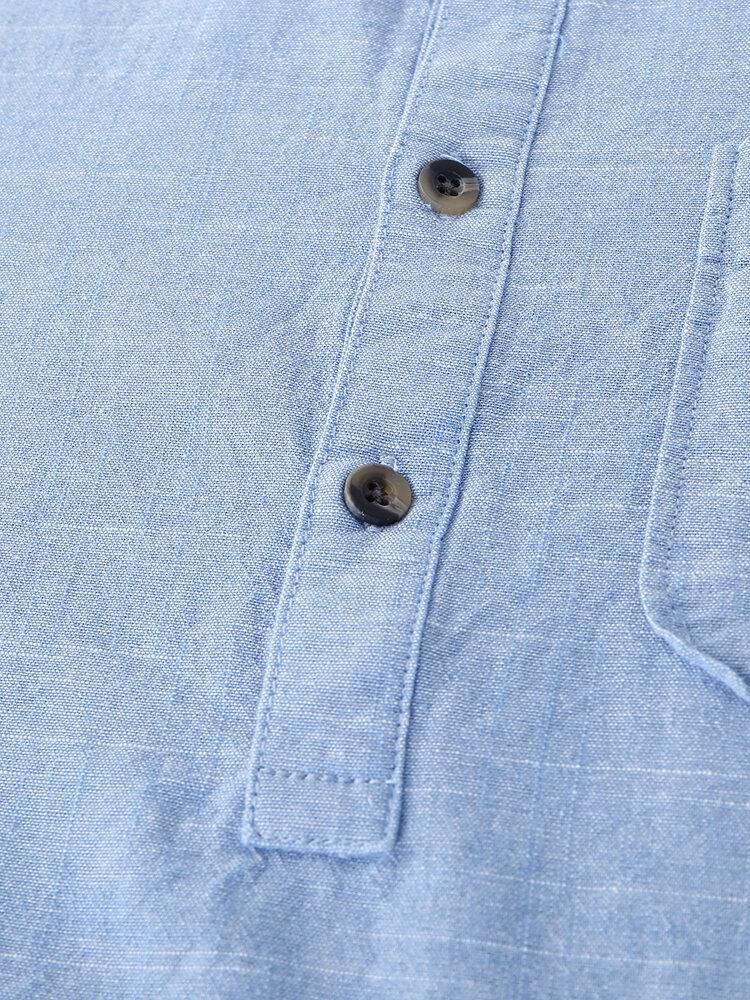 Bomull Herre Ensfarget Stativ Krage Pustende Lange Armer Henley Skjorter