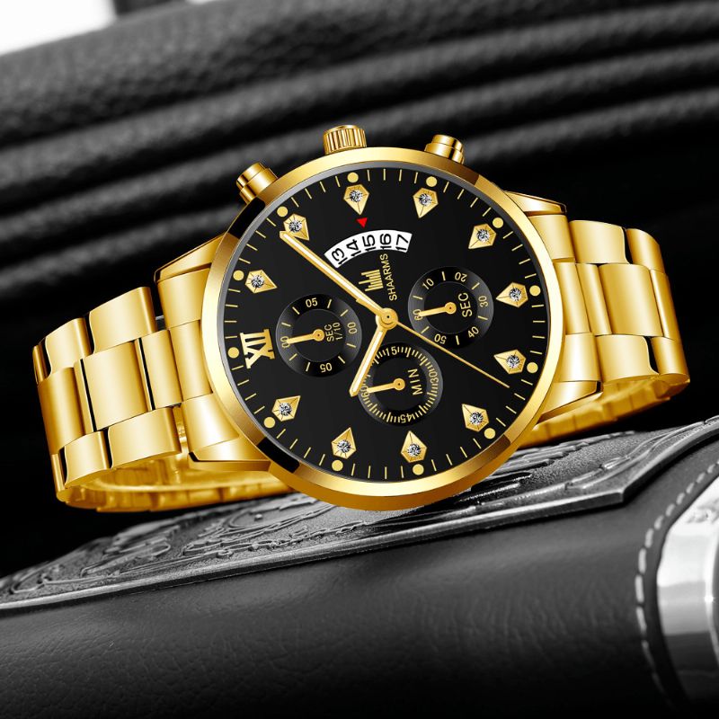 Business Casual Med Kalender Innlagt Rhinestones Dial Stålreim Menn Kvarts Watch