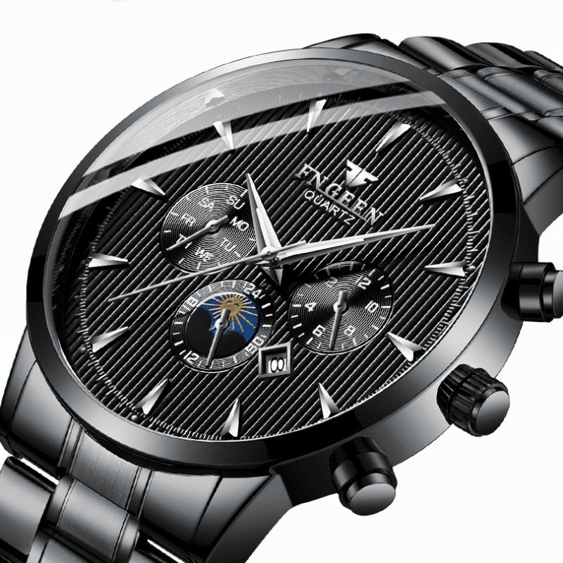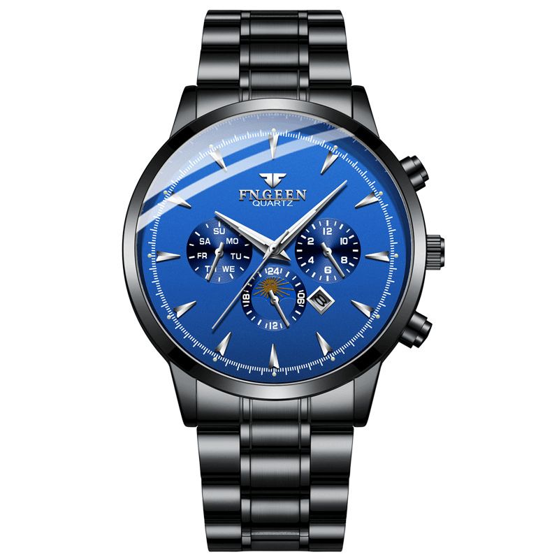 Business Luminous Med Kalenderskive Rustfritt Stålbånd Vanntett Herrekvartsklokke