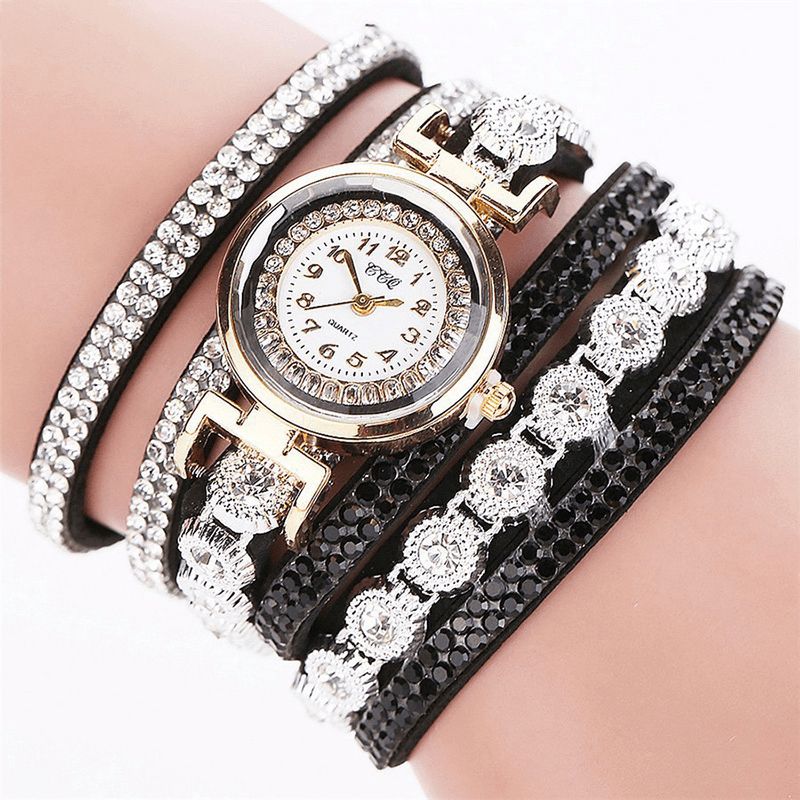 Ccq Fashion Luxury Rhinestone Pu Leather Band Kvartsarmbåndsklokke For Kvinner