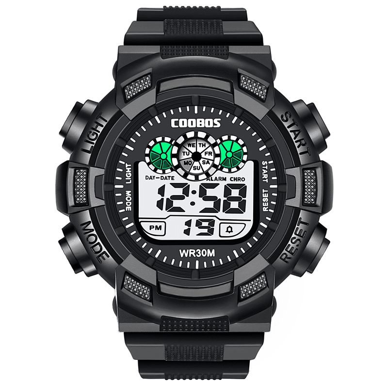 Coobos 0929 Fashion Menn Led Elektronisk Digital Klokke Lysende Kalender Vekkerklokke Vanntett Sport Klokke