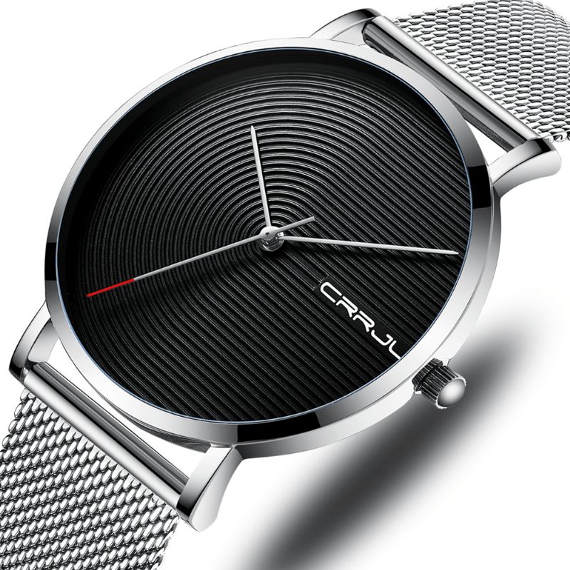 Crrju 2164 Full Stålrem Mote Legeringsveske Enkel Blå Urskive Herreklokke Kvartsklokke