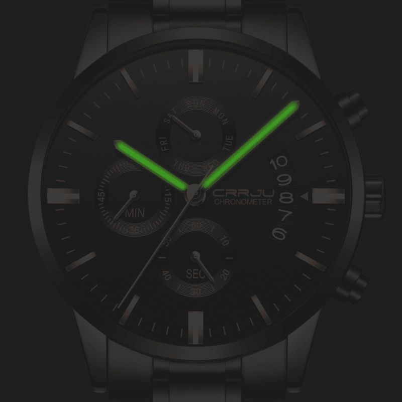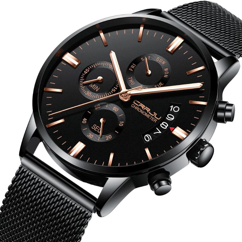 Crrju 2222 Business Style Black Mesh Belte Herre Mote Full Stålrem Lysende Display Kvartsklokke