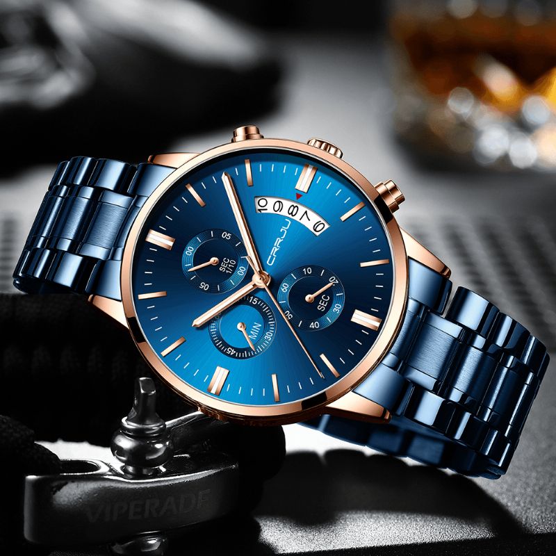 Crrju 2273 Motestil Full Stålrem, Kronograf Datovisning Herrekvartsklokke