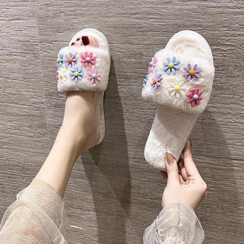 Dame Blomsterdekor Sklisikker Plysj Tøfler I Bomull