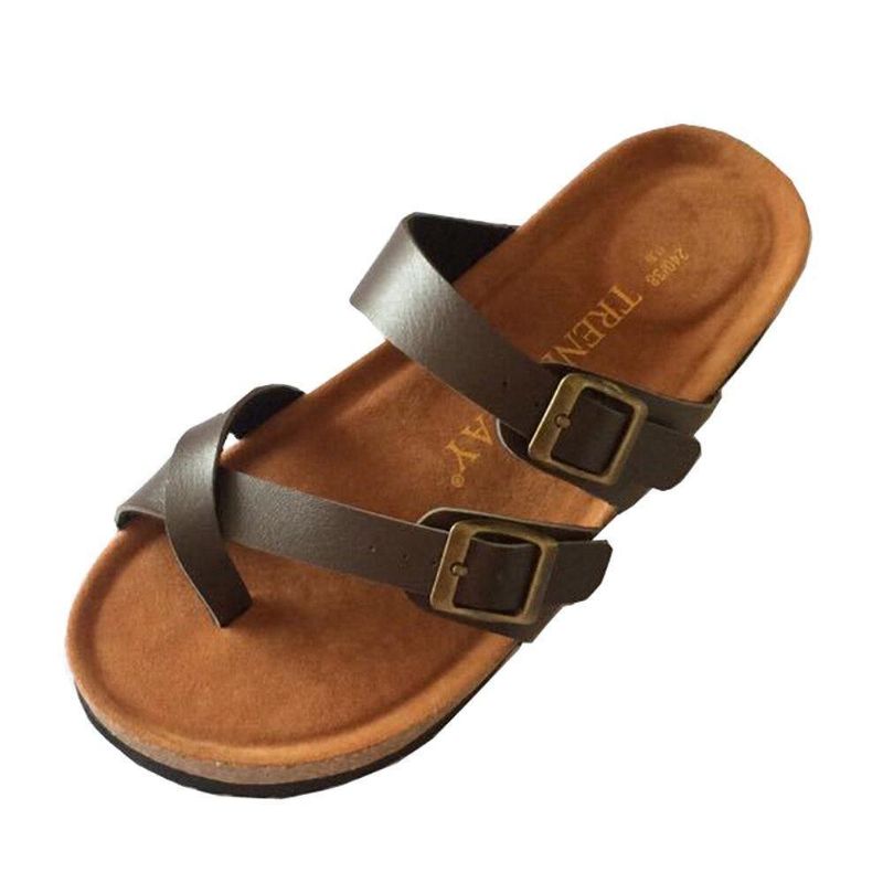 Dame Dobbel Spenne Stropp Comfy Beach Flip Flops Cork Flat Sandaler