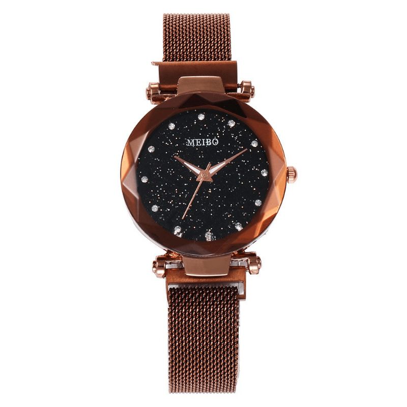 Dame Kjole Star Magnetic Band Mote Luksus Crystal Dial Kvinner Kvartsklokke