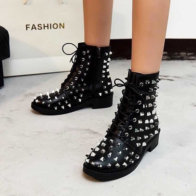 Damesko Med Tykke Hæler Med Snøring Foran Om Vinteren