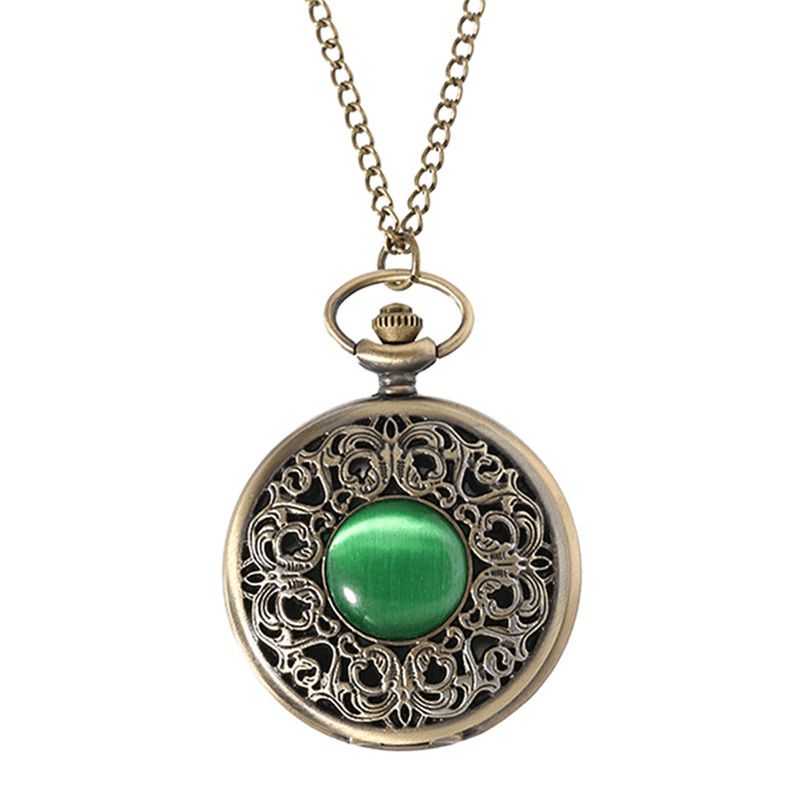Deffrun Big Dial Pocket Watch Retro Style Green Gem Kvartsklokke