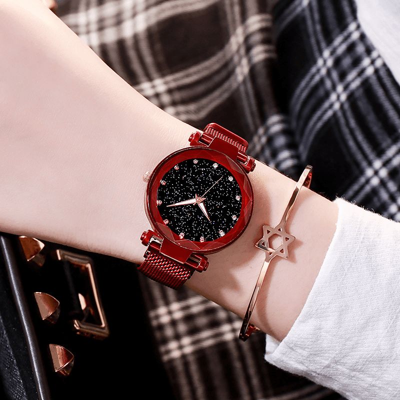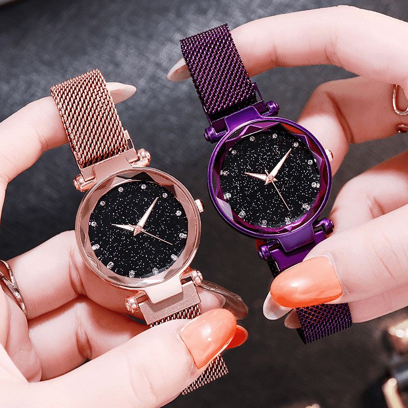 Deffrun Milan Strap Fashion Starry Sky Magnetic Dame Watch Starry Sky Watch Kvinne Kvartsklokke