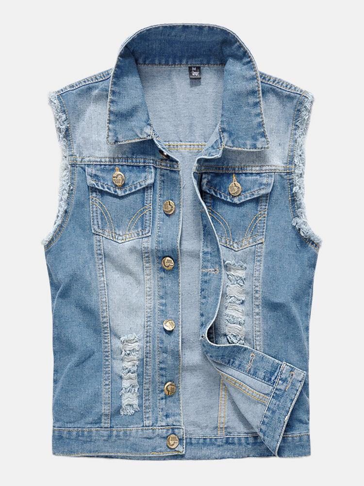 Doble Doble Lommer I Dongeri Mote For Menn Turn Down Collar Casual Vest