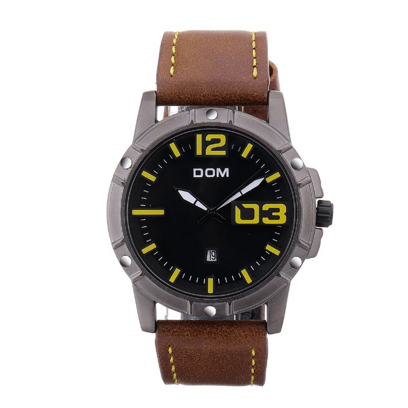 Dom Herre Luxury Sport Armbåndsur Herreklokke Lærreim Business Vanntett Kvartsklokke