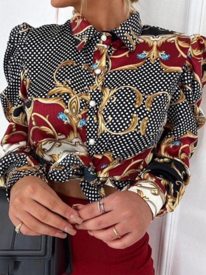 Elegant Skjortekrage Med Trykt Topp Med Prikker