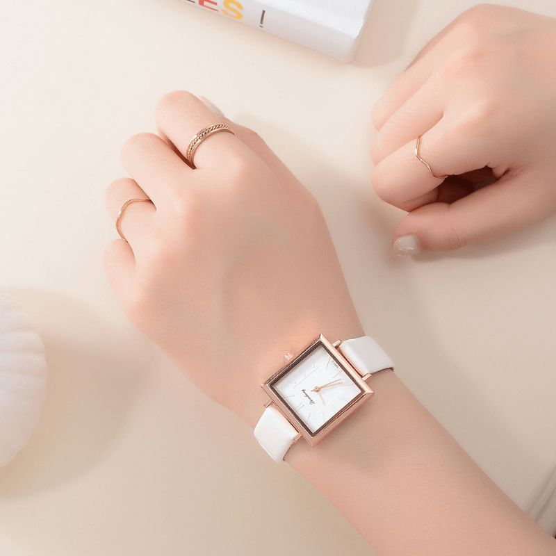 Enkel Firkantet Urskive Pu Lærreim Damemote Damekjole Armbånd Kvartsklokke