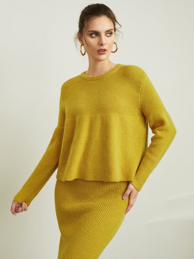 Enkel Vanlig Langermet Løs Genser Med Rund Hals