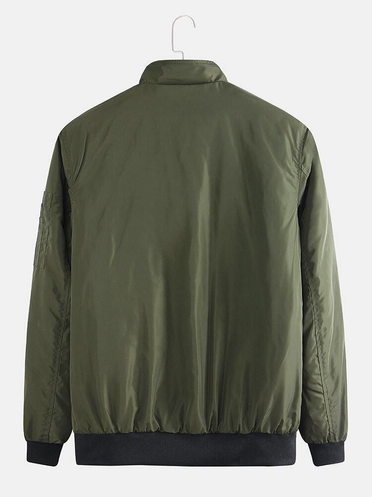 Ensfarget Sidelomme Med Glidelås For Menn Vindtett Bomberjakke