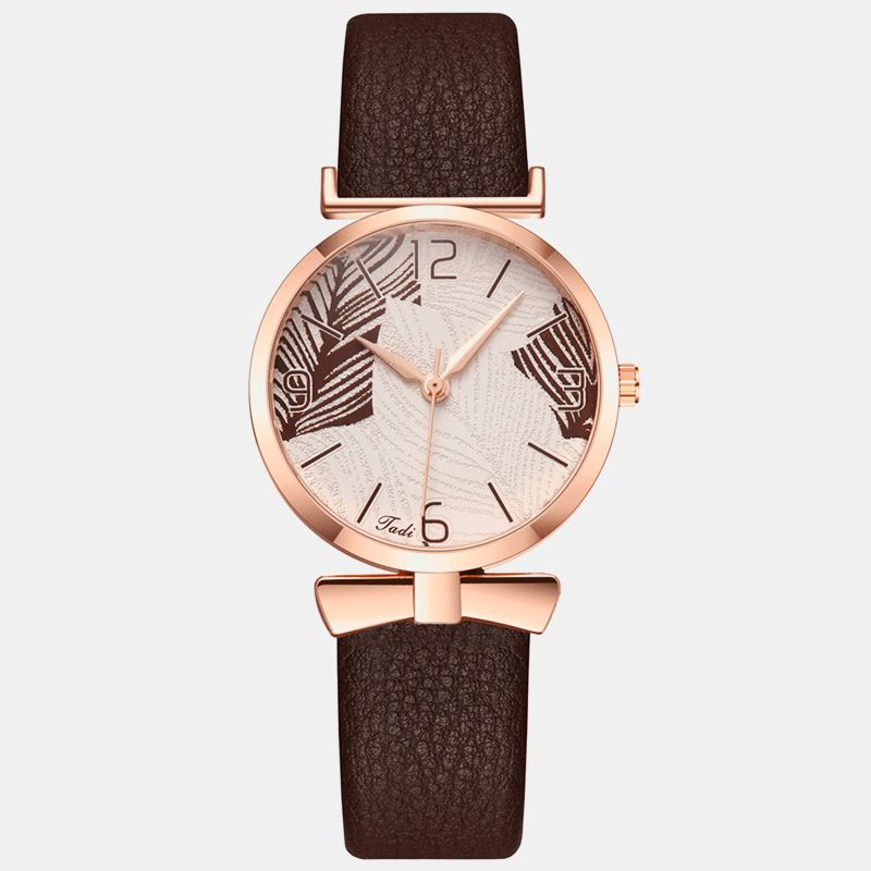 Fasjonable, Morsomme Trendy Dameklokker, Tre Og Mønsterurskive I Rosegulllegering, Lærbånd, Kvartsklokke