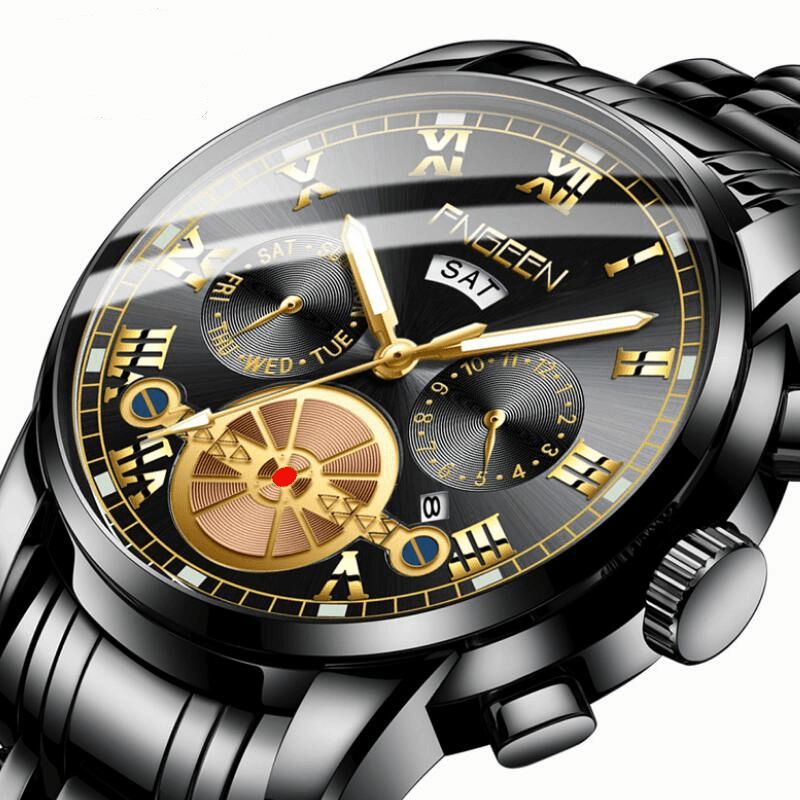 Fngeen 4001 Fashion Business Lysende Med Kalenderdatovisning Stål Pu Lærreim Vanntett Kvartsklokke For Menn