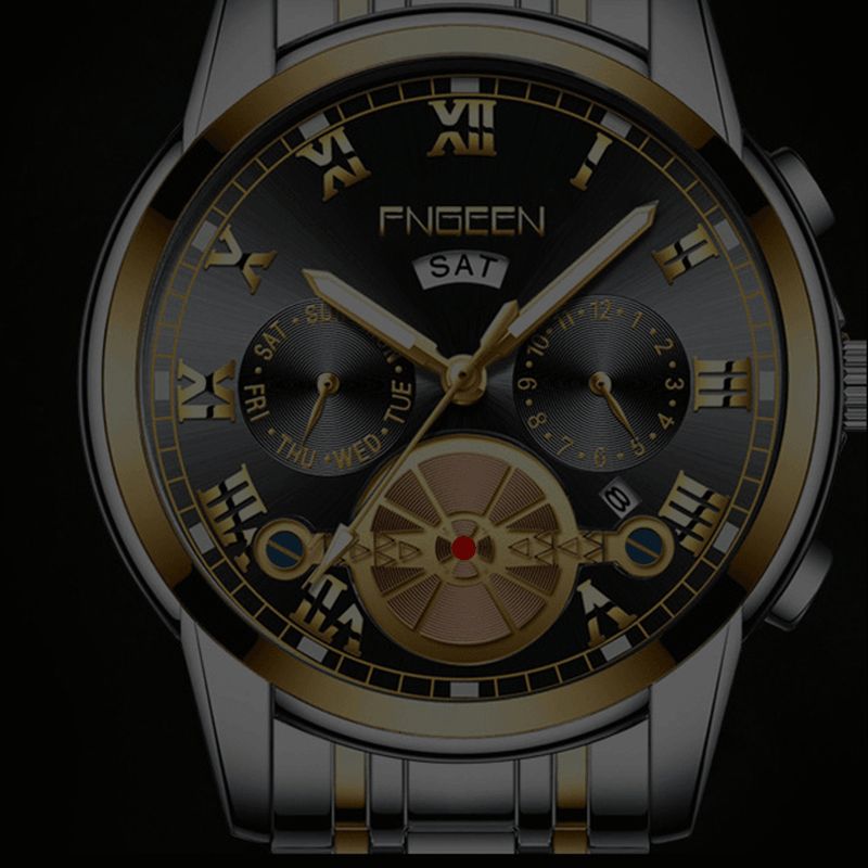 Fngeen 4001 Fashion Business Lysende Med Kalenderdatovisning Stål / Pu-Skinnreim Vanntett Herrekvartsklokke