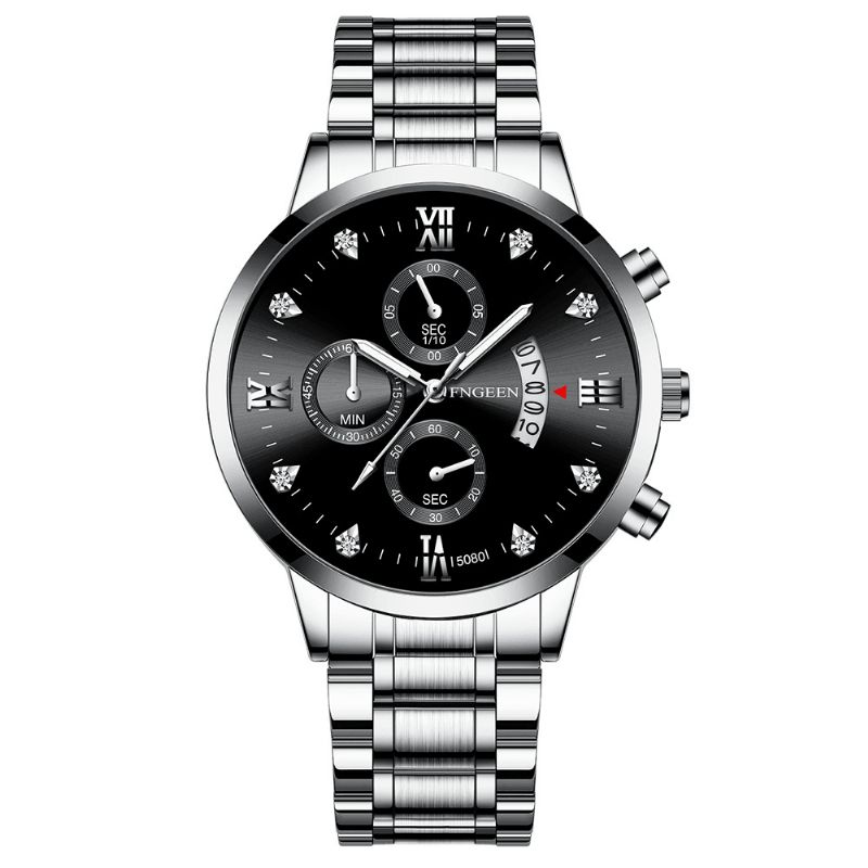 Fngeen 5080 Fashion Business Diamond Dial Lysende Peker Med Kalenderdatovisning Stålrem Vanntett Kvartsklokke For Menn