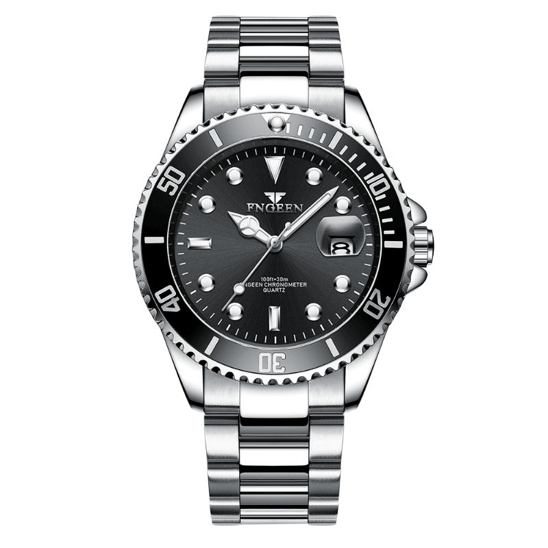 Fngeen 8080 Fashion Business Luminous Pointer Kalender Datovisning Stålrem Vanntett Kvartsklokke For Menn