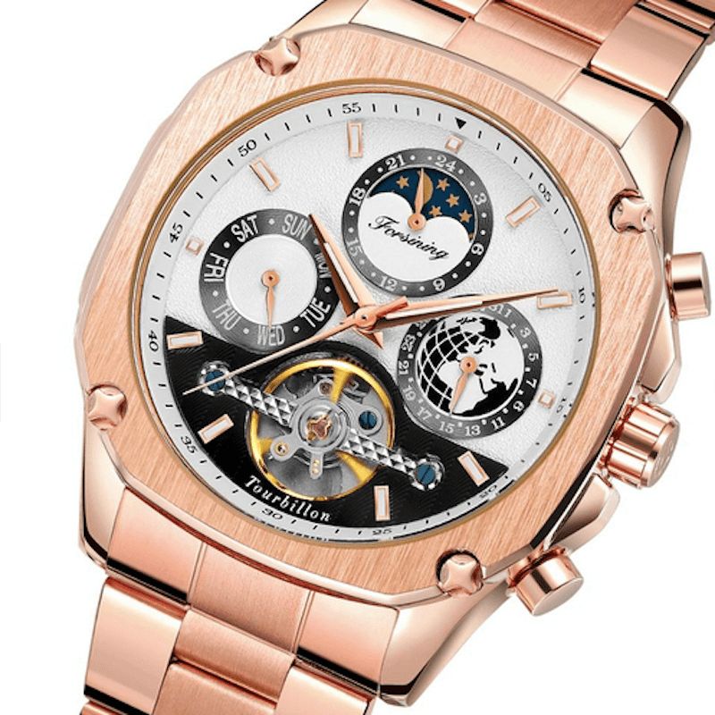 Forsining Fsg6912 Automatisk Klokke Lysende Uke Display Rustfritt Stål Mote Herre Mekanisk Klokke