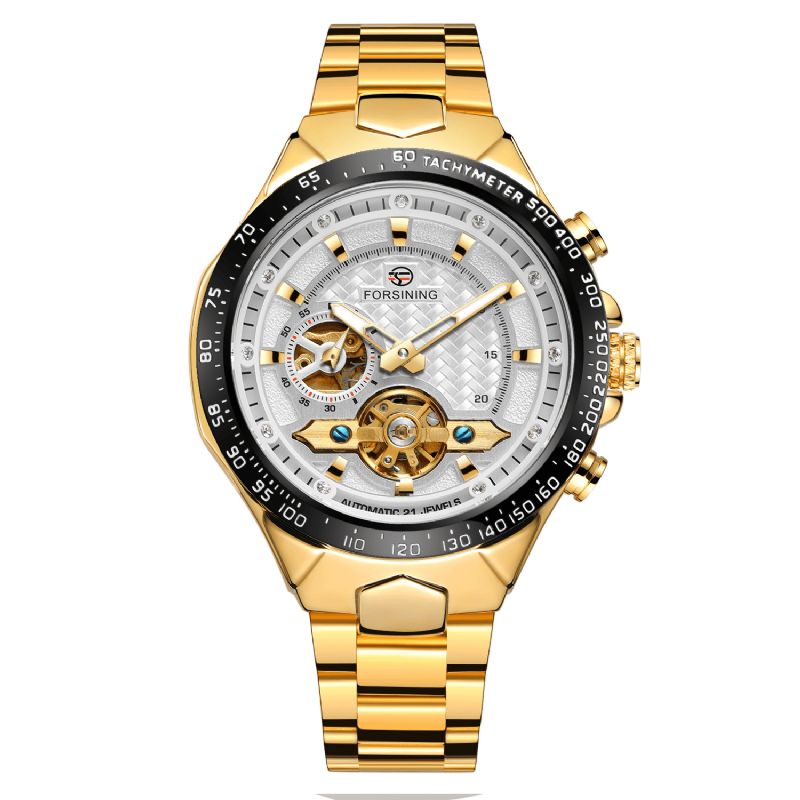 Forsining Fsg8204 Mote Herre Automatisk Klokke Lysende Display Vanntett Rustfritt Stålreim Mekanisk Klokke