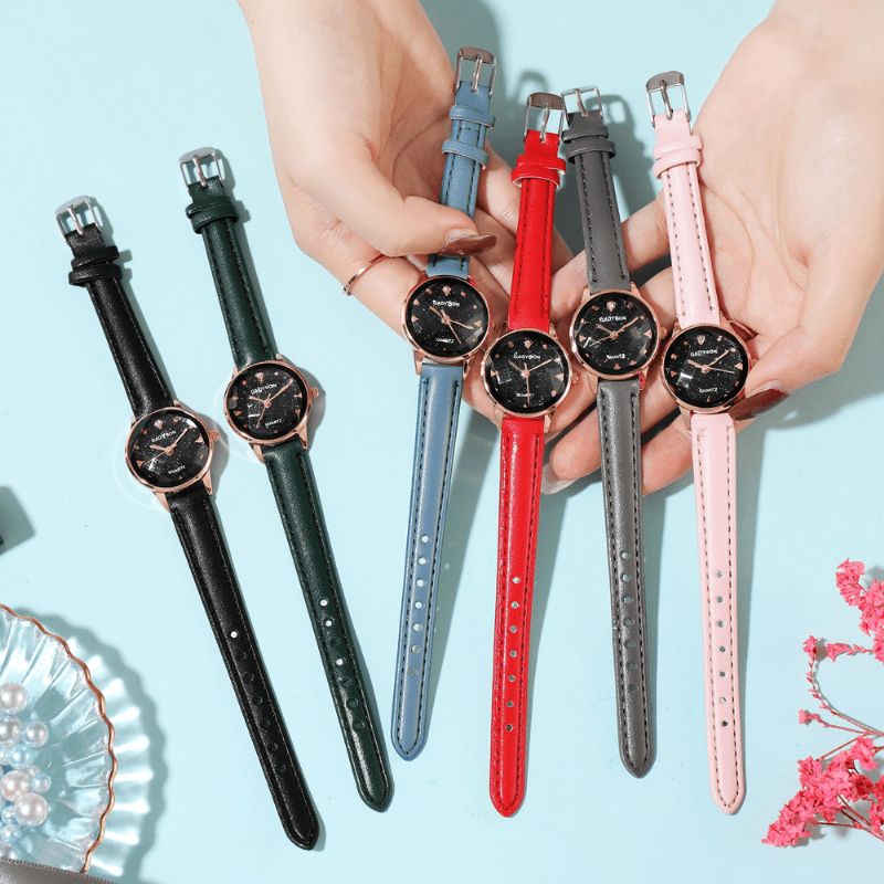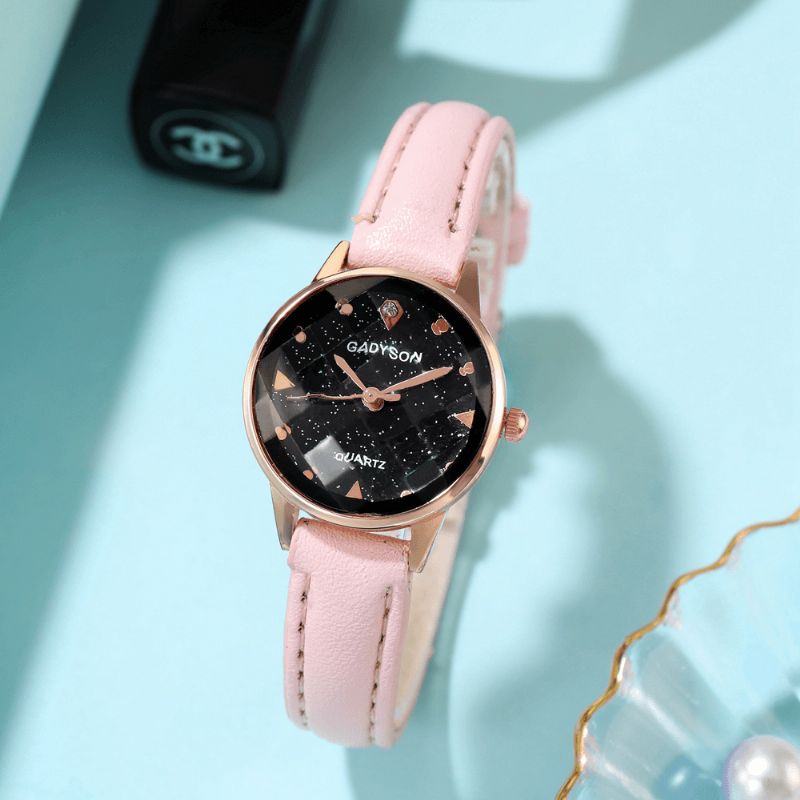 Gadyson A0Q19 Mote Dameklokke Lett Luksus Tredimensjonalt Skåret Glassurskive Lærreim Kvartsklokke