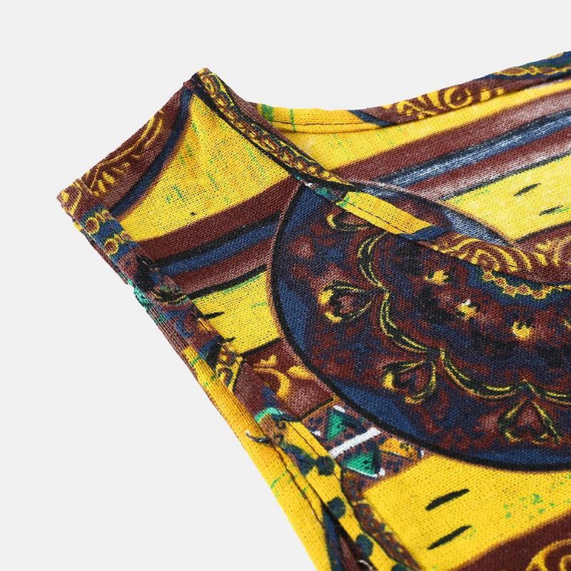 Herre 100% Bomull Sommer Etnisk Blomstertrykt Ermeløs Fritidsvest