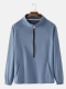 Herre Bomull Ensfarget Raglanermer Med Halv Glidelås Design Henley-Skjorter Med Lomme