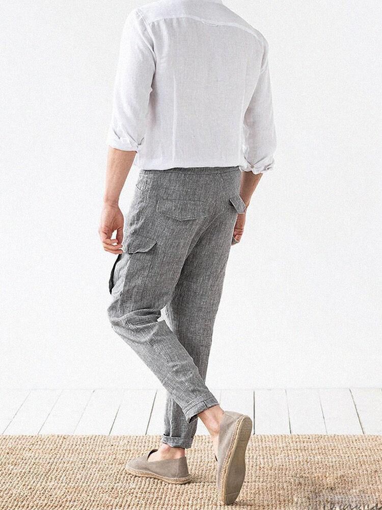 Herre Bomull Lin Ensfarge Uformelle Snøring Cargo Bukser