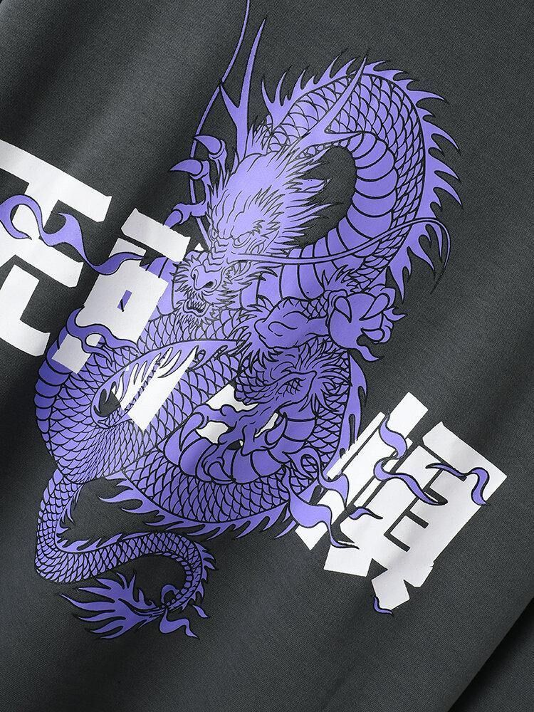 Herre Dragon Chinese Character Back Print 100% Bomull Hettegensere Med Snøring
