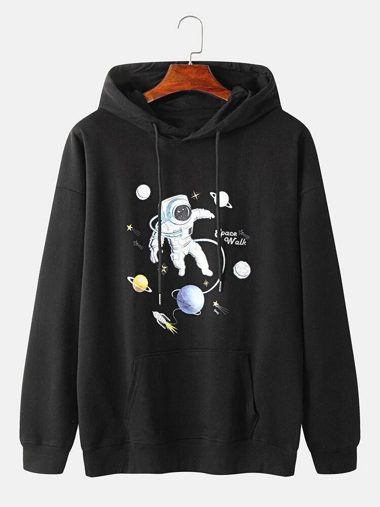 Herre Planet Astronaut Print Cotton Overhead Hettegensere Med Kengurulomme