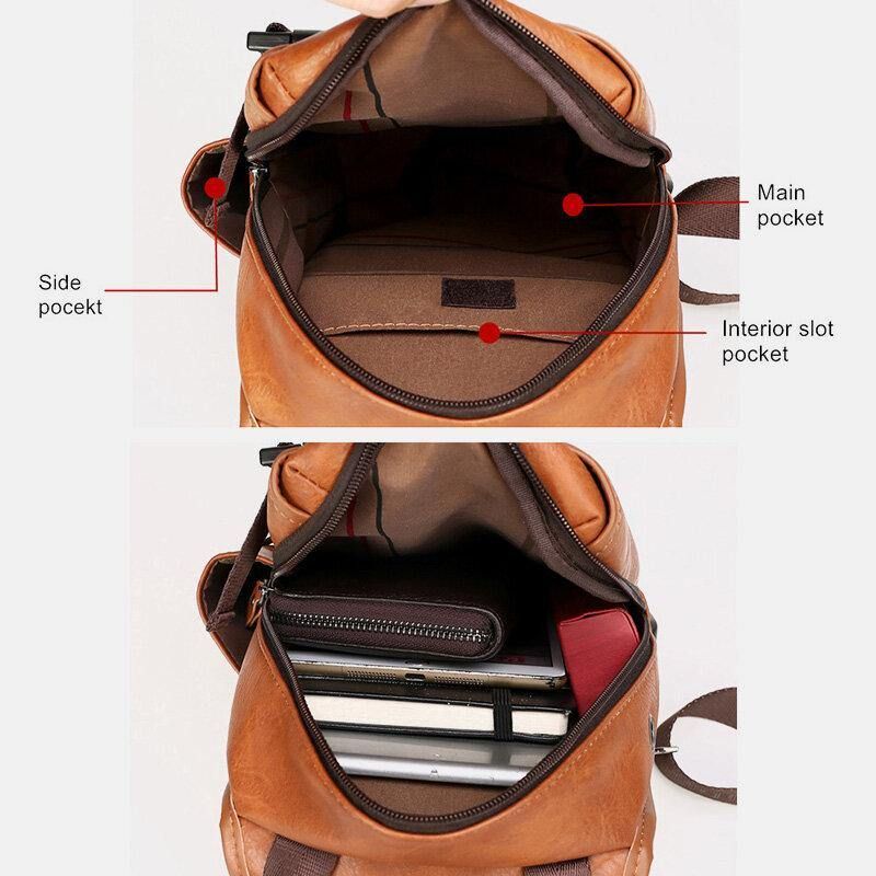 Herre Pu-Skinn Multifunksjonshodesetthull Med Stor Kapasitet Usb-Lading Short Trip Sling Bags Crossbody Bag Brystveske