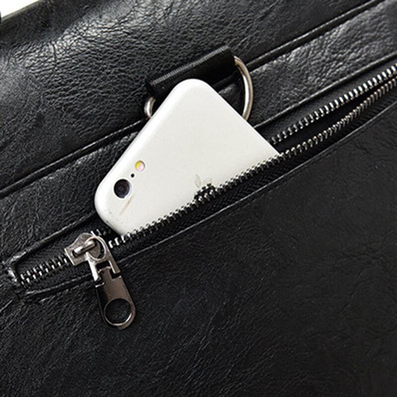 Herre Pu-Skinnlerret Stor Kapasitet 14 Tommer Multifunksjons Koffert Crossbody-Vesker Håndveske Ryggsekk