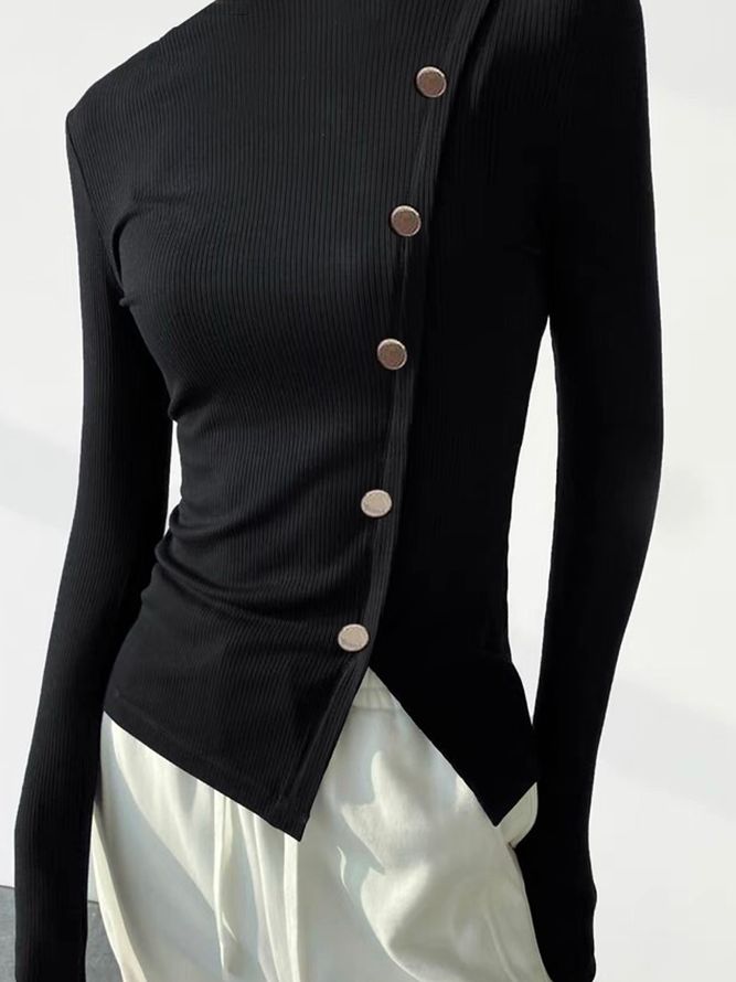 Høy Elastisitet Urban Stand Krage Langermet Tight T-Skjorte
