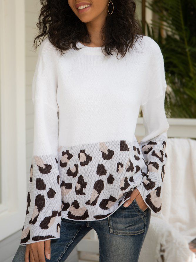 Hvit Leopard Langermet Genser