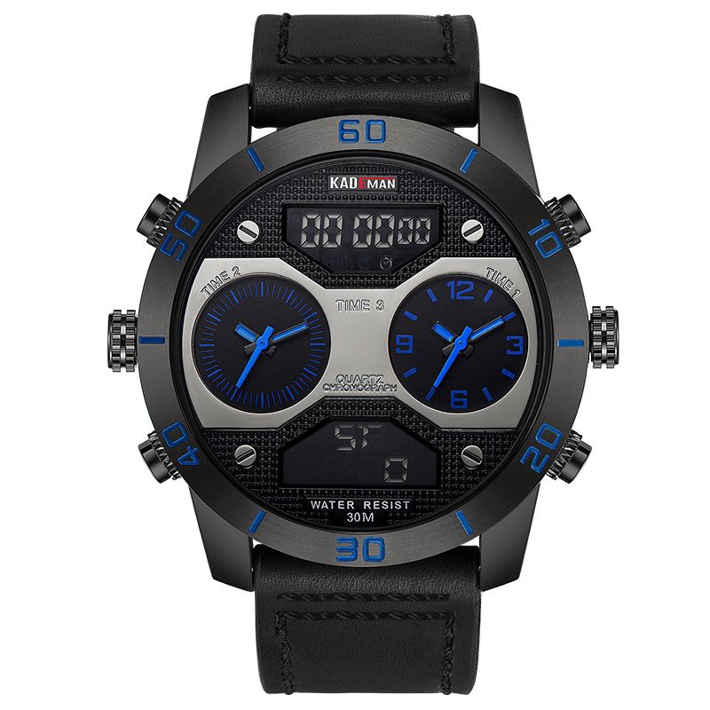 Kademan 158 Fashion Herre Digital Klokke Lysende Dato Måned Display Lærreim Lcd Dual Display Klokke