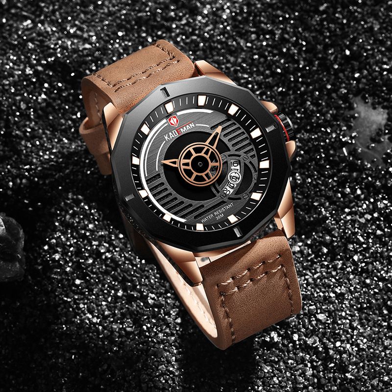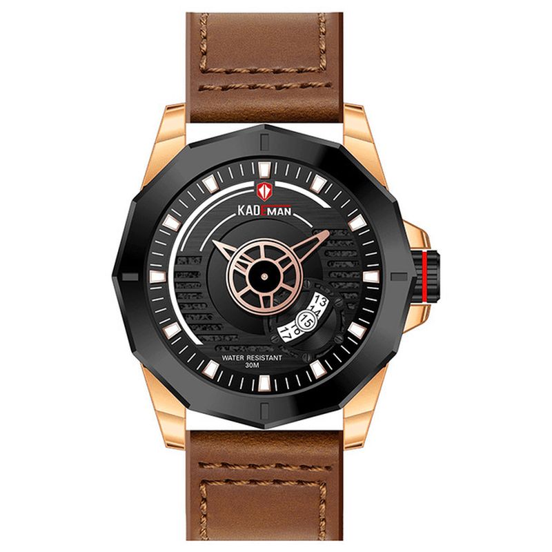 Kademan 805 Calendar Leather Band Kvartsklokke Vanntett Casual Style Herreklokke